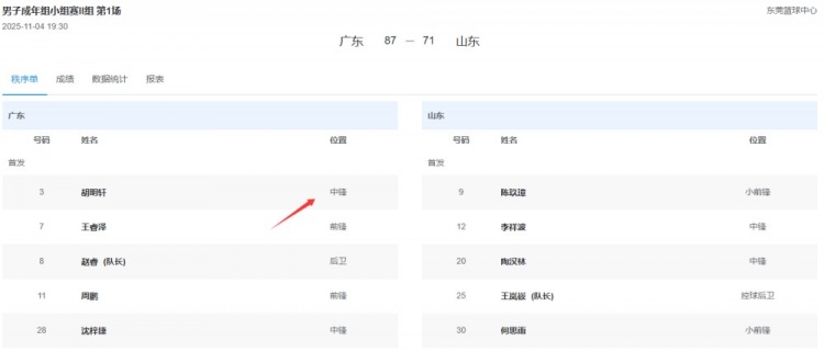 值得一提的是,全運(yùn)會(huì)官網(wǎng)秩序單顯示,胡明軒的位置為中鋒。