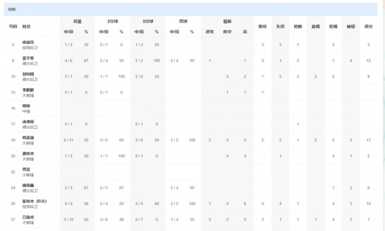 河南隊(duì)方面,韓霈瑜得到17分5籃板2助攻1搶斷,崔曉龍拿到15分6籃板3助攻1搶斷,姜宇星貢獻(xiàn)12分1籃板3助攻2搶斷。