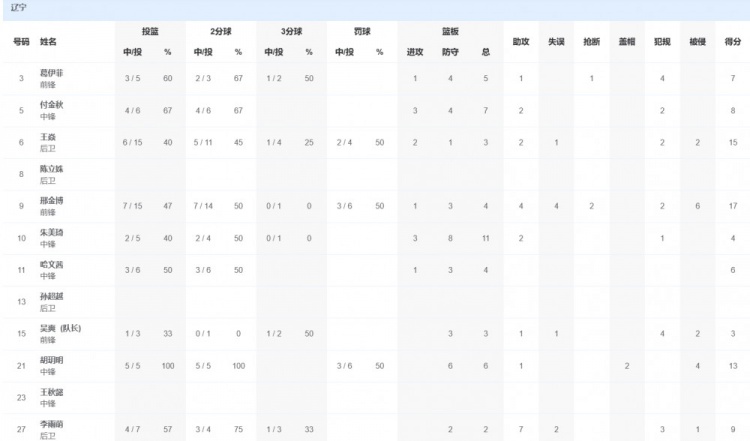 11月8日訊 全運會女籃小組賽,遼寧全運女籃82-57擊敗上海全運女籃。遼寧隊方面,邢金博17分4籃板4助攻2搶斷,王焱15分3籃板2助攻。上海隊方面,劉雪園17分2籃板3助攻,丁康辰13分5籃板1助攻。