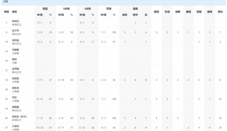 11月8日訊 全運會男籃小組賽,河南全運男籃92-74擊敗中國香港全運男籃。河南隊方面,呂俊虎35分11籃板5助攻2蓋帽,賈昊22分1籃板2助攻,崔曉龍18分7籃板8助攻。中國香港隊方面,楊睿騏20分4籃板2助攻1搶斷1蓋帽。