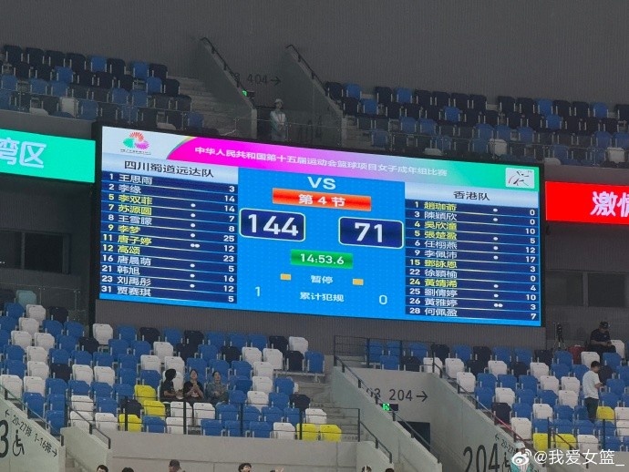 四川隊(duì) 144-71 香港隊(duì),四川隊(duì)七人得分上雙,李夢(mèng)25分,高頌23分6籃板7助攻,韓旭16分5籃板,李緣14分5籃板,李雙菲14分7助攻,劉禹彤和唐子婷均獲得12分。香港隊(duì)李佩沛17分5助攻,任栩燕12分,吳欣潼和劉倩婷均獲得10分。