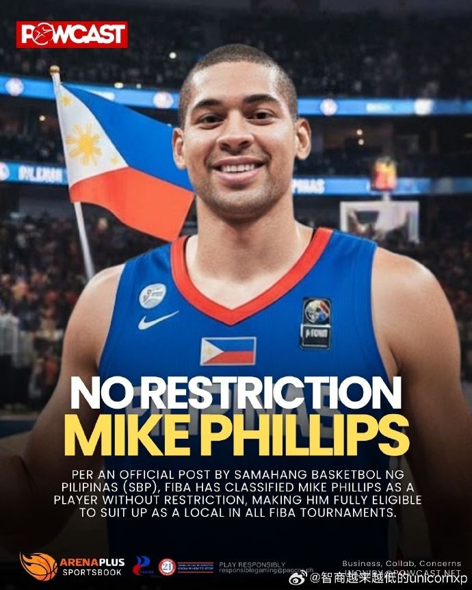 2月21日訊 據(jù)歐洲籃球以及選秀專家王健報(bào)道,菲律賓籃協(xié)通過(guò)向國(guó)際籃聯(lián)申請(qǐng),將在美國(guó)出生長(zhǎng)大的原美籍菲裔內(nèi)線Mike Phillips重新認(rèn)定為本土球員,未來(lái)將不占?xì)w化球員名額。