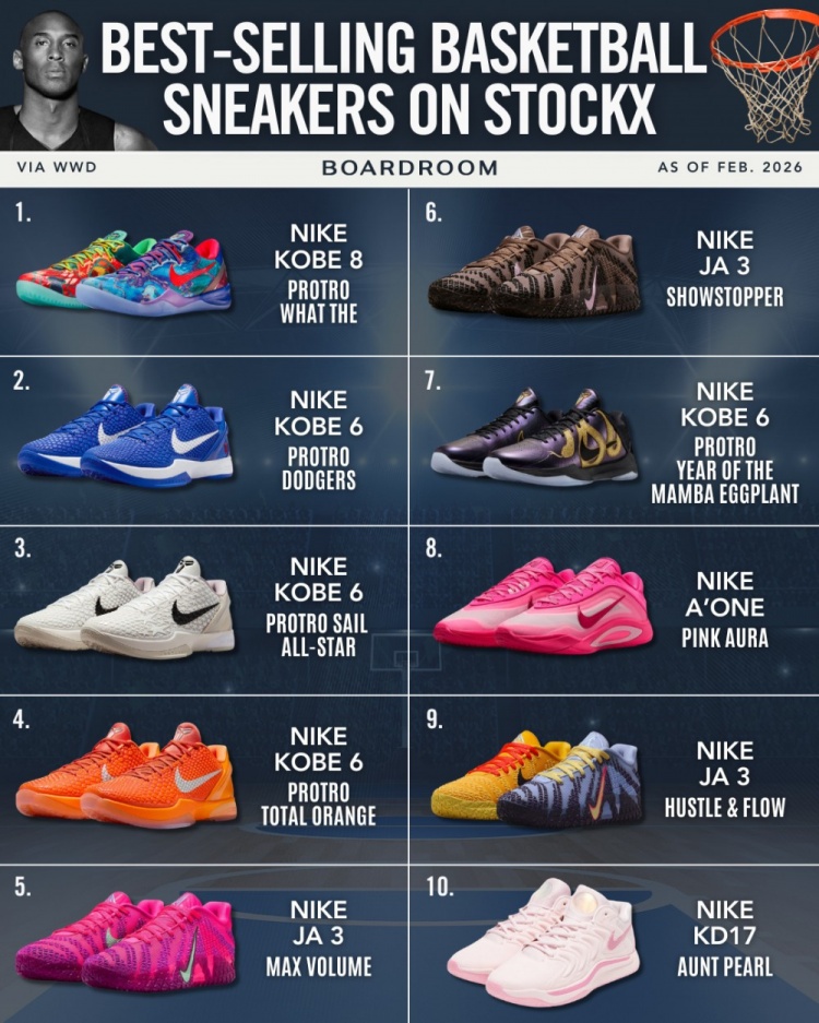 2月22日訊 美媒Boardroom報(bào)道,2025年球鞋二級(jí)市場依舊是被科比球鞋主導(dǎo)。