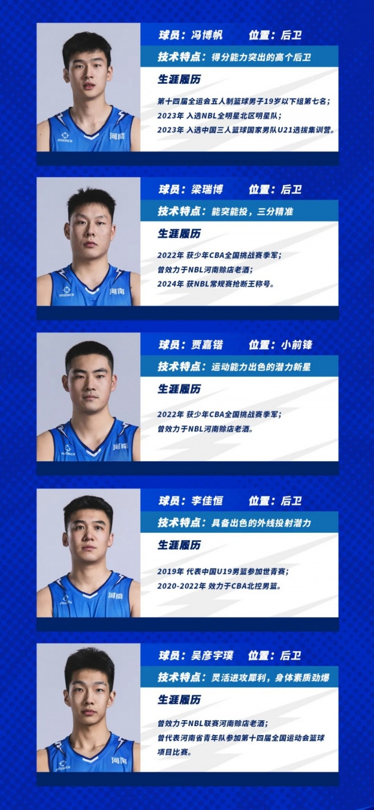 焦作文旅是本賽季六支新軍之一,他們的總經(jīng)理李根是中國籃球名宿,前國家隊隊員,CBA總冠軍成員;助理教練薛玉洋也是中國籃球名宿,曾參加NBA選秀并被小牛隊選中。外籍球員霍爾德得分能力出眾,本賽季曾有過得分50+的亮眼表現(xiàn),威姆斯是球員兼助理教練,曾是CBA總冠軍成員,馮博帆和梁瑞博都擁有較強的得分能力。