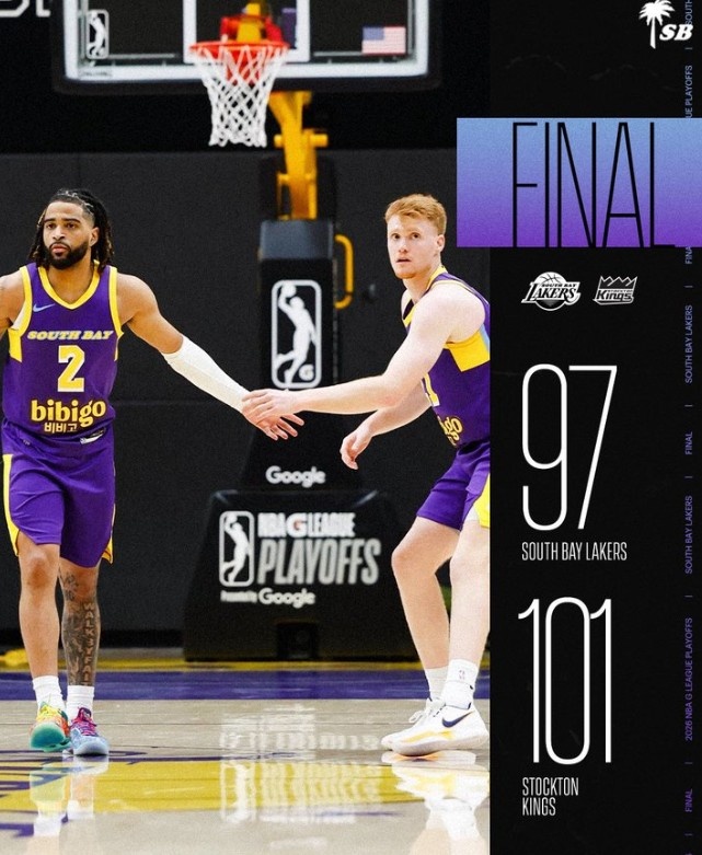 4月6日訊 NBA G聯(lián)盟季后賽西部決賽,南灣湖人以97-101不敵斯托克頓國(guó)王。