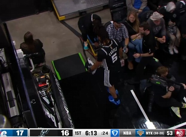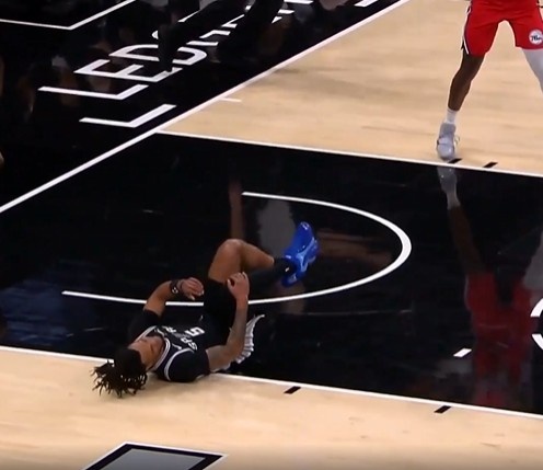 希望沒事!卡斯?fàn)栔w文班 但自己被德拉蒙德踢到膝蓋后回更衣室