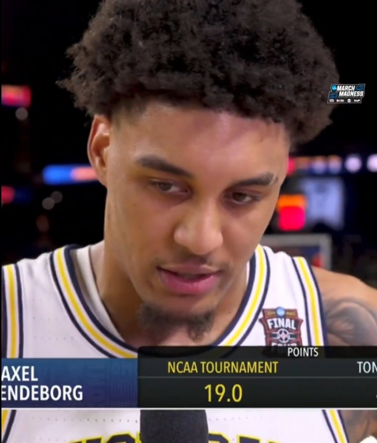 密歇根大學(xué)主力、熱門(mén)秀倫德博格在半場(chǎng)休息時(shí)接受了采訪。