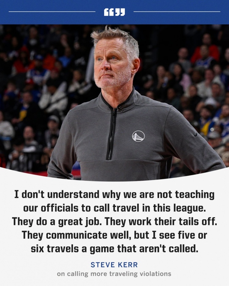 3月4日訊 今日,勇士主帥史蒂夫-科爾在賽后采訪中談到裁判對于走步的吹罰問題,表示“我在一場比賽中能看到有五六個走步都沒人吹?!?/p>