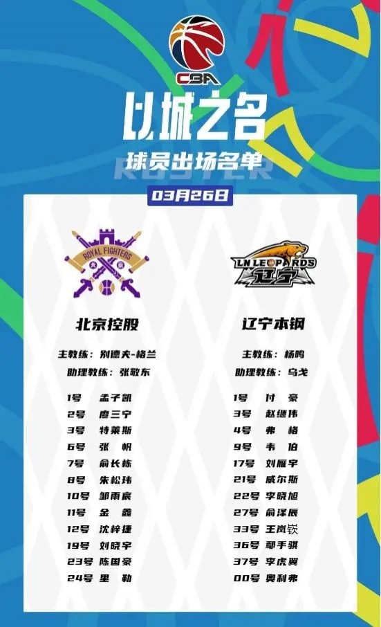 3月26日訊 今晚7點35分,北控男籃將在主場迎戰(zhàn)遼寧男籃。媒體人@球圈趙探長 在社媒上曬出了兩隊今天的大名單,具體如下:北控:孟子凱、廖三寧、特萊斯、張帆、俞長棟、朱松瑋、鄒雨宸、金鑫、沈梓捷、劉曉宇、陳國豪、里勒。遼寧:奧利弗、付豪、趙繼偉、弗格、韋伯、劉雁宇、威爾斯、李曉旭、余澤辰、王嵐嵚、鄢手騏、李虎翼。
