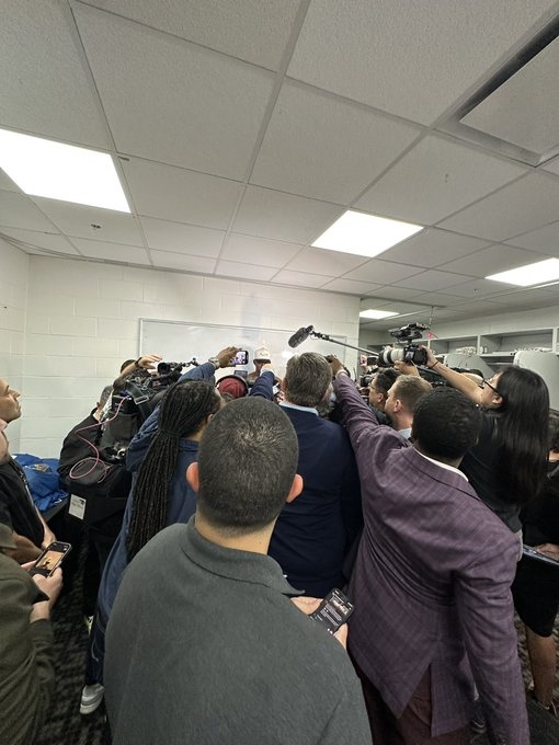 比賽結(jié)束后,巴特勒的采訪現(xiàn)場(chǎng)被媒體圍得水泄不通。