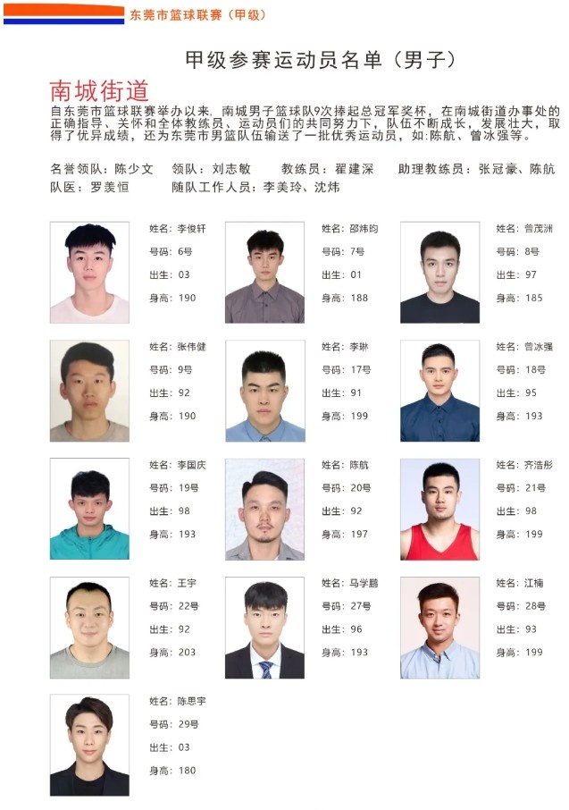 東莞市籃球聯(lián)賽將于4月7日正式開(kāi)賽,詳細(xì)運(yùn)動(dòng)員名單如下: