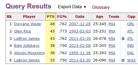 據(jù)統(tǒng)計(jì),希羅(25歲67天)成為熱火隊(duì)史單場(chǎng)砍下至少35分且投籃命中率75%+最年輕的球員。榜單其余球員如下: