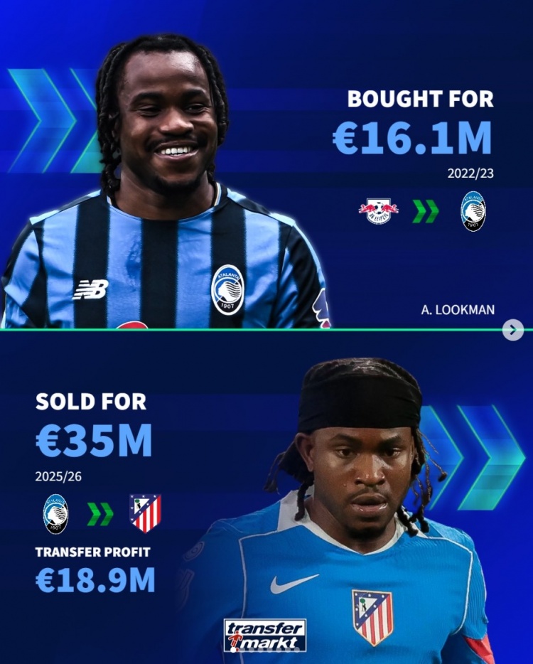 2月23日訊 亞特蘭大前鋒盧克曼在冬窗轉(zhuǎn)會馬競,《轉(zhuǎn)會市場》也統(tǒng)計了亞特蘭大近年通過低買高賣的盈利操作: