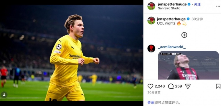 賽后球員更新社媒,曬出自己的比賽照慶祝勝利,并配文寫道:“歐冠之夜?!?/p>