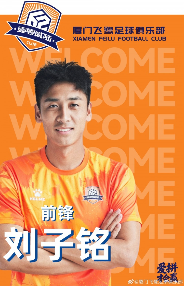 歡迎劉子銘加盟廈門飛鷺足球俱樂部,期待他在新的賽季中為球隊貢獻力量。