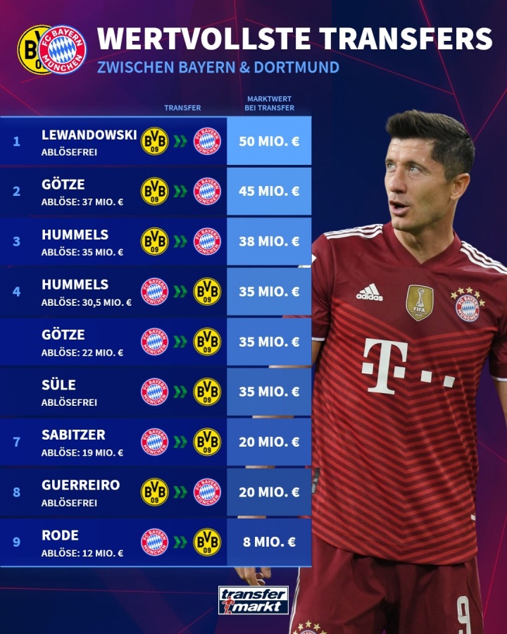 1、萊萬(多特→拜仁):免簽,身價5000萬歐