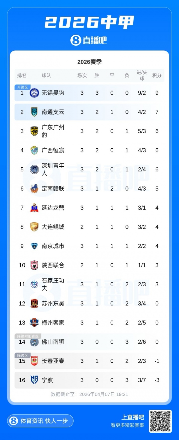 寧波本賽季中甲開賽3戰(zhàn)全敗,目前以負(fù)3分墊底。