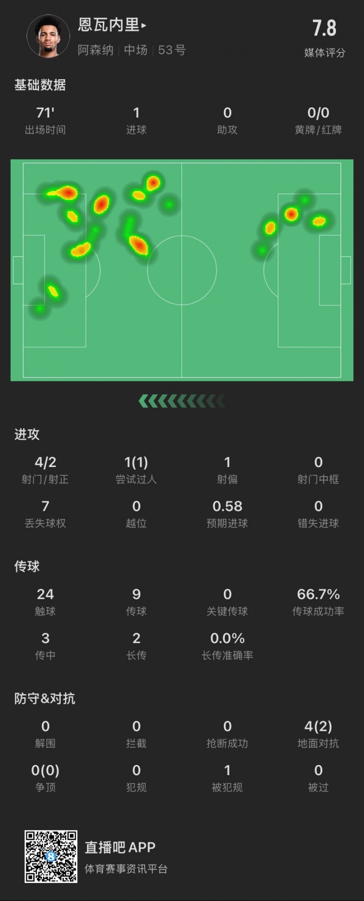 17歲恩瓦內(nèi)里本場(chǎng)主要數(shù)據(jù)↓