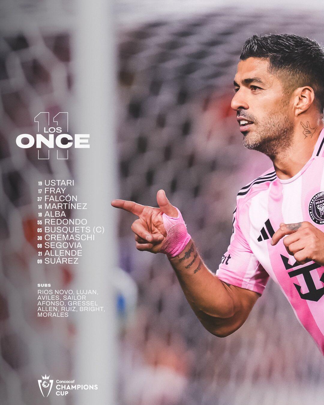 邁阿密國際替補:34-諾沃、2-盧揚、6-阿維萊斯、15-塞勒、22-阿方索、24-格雷塞爾、32-阿倫、41-魯伊斯、42-布萊特、81-莫拉萊斯