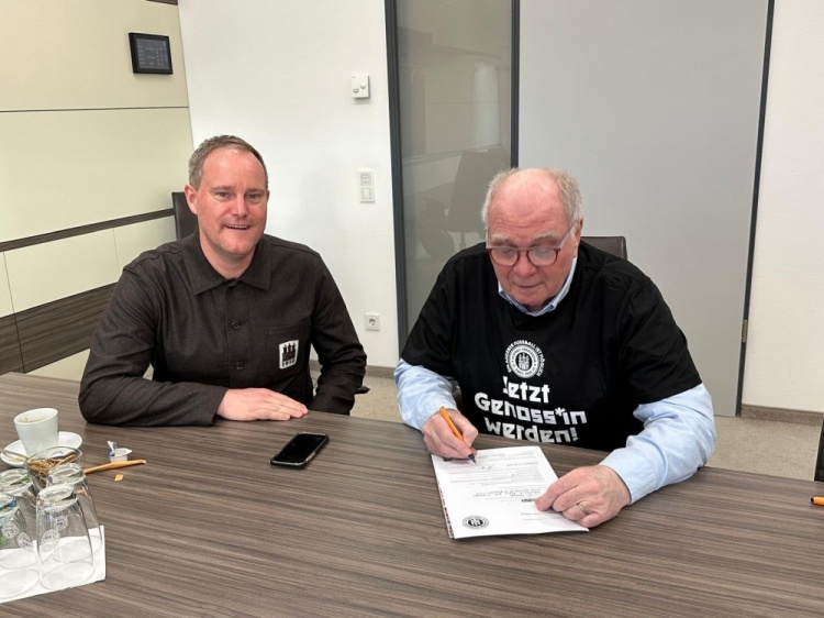 到目前為止,已有超過19000人加入了這家合作社,認購股份總價值已超過2350萬歐元,現(xiàn)在成員也包括了烏利-赫內斯。在奧克-戈特利希到訪慕尼黑期間,赫內斯穿上了圣保利合作社的T恤并認購了股份。就這樣,這位當年的“拯救者”如今成為了一名同志。