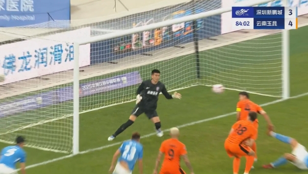 03月28日訊 中超第3輪,深圳新鵬城vs云南玉昆,比賽第84分鐘,楊一鳴頭球砸中李松益入網(wǎng),深圳新鵬城扳回一球3-4落后云南玉昆。
